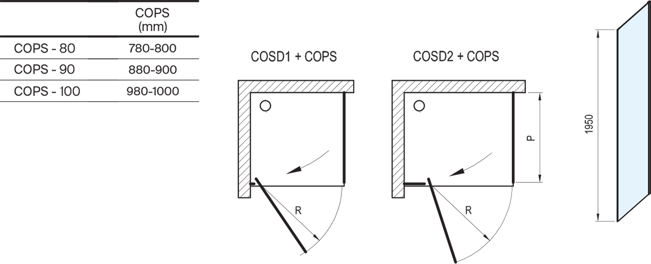 Otočením výrobku o 180 ° získate ľavý alebo pravý variant. Montuje sa do obloženého rohu kúpeľne a to v kombinácii s výrobkom COSD1 alebo COSD2 na vaničky Perseus Pro, Perseus Pro Chrome, Gigant Pro, Gigant Pro Flat, Gigant Pro Chrome alebo priamo na podlahu so zabudovaným odtokovým žľabom či podlahovým vpustom.
