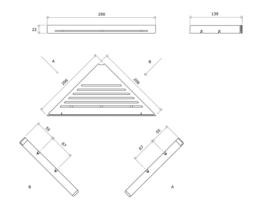Rovná plocha poličky je perforovaná tak, aby sa voda nedržala na povrchu, napriek tomu však poskytuje stabilitu umiestneným predmetom. Uprostred poličky sú uchytené tri spodné háčiky, ktoré udržia aj ťažší predmet ako je napríklad fén. Kombináciou dvoch a viacerých kusov poličiek docielite efektnú zostavu s extra odkladacou plochou. Odporúčame kombinovať s rovnou poličkou Slim S. Na vonkajšie čistenie odporúčame používať prípravok Ravak Cleaner Chrome. Montáž na štyri hmoždinky.