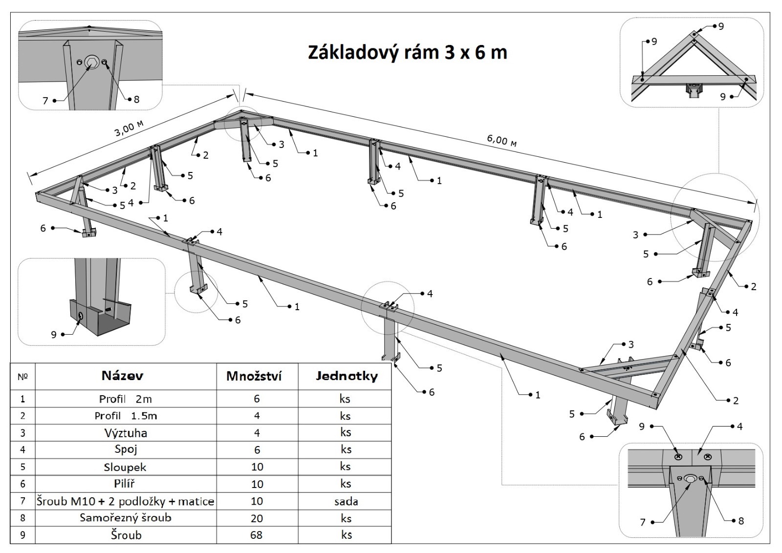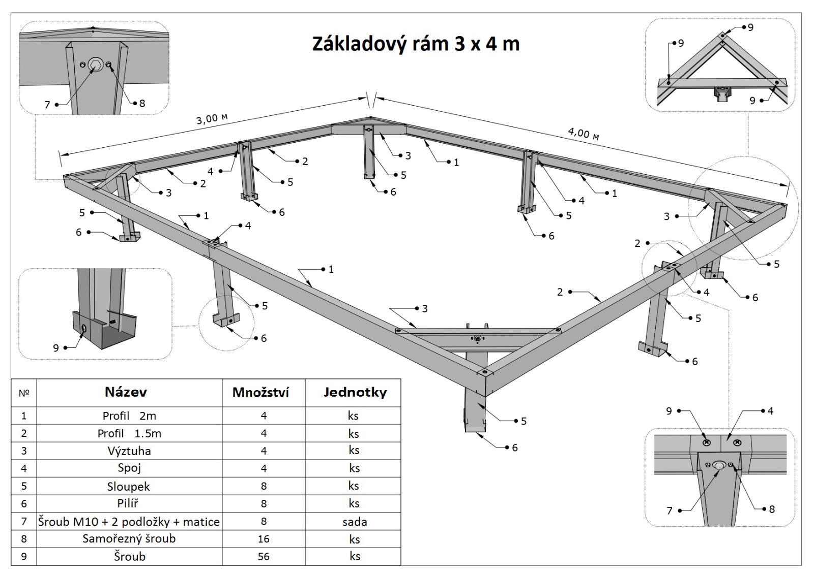 Rám je určený pouze pro skleníky Scobax Vitamin a lze ho objednat za poplatek samostatně. Když si ho necháte dovézt se skleníkem, neplatíte dopravné.